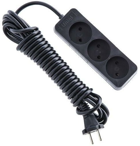 Uniel Удлинитель Uniel Standart, 3 розетки, 5 м, 10 А, 2500 Вт, без з/к, черный