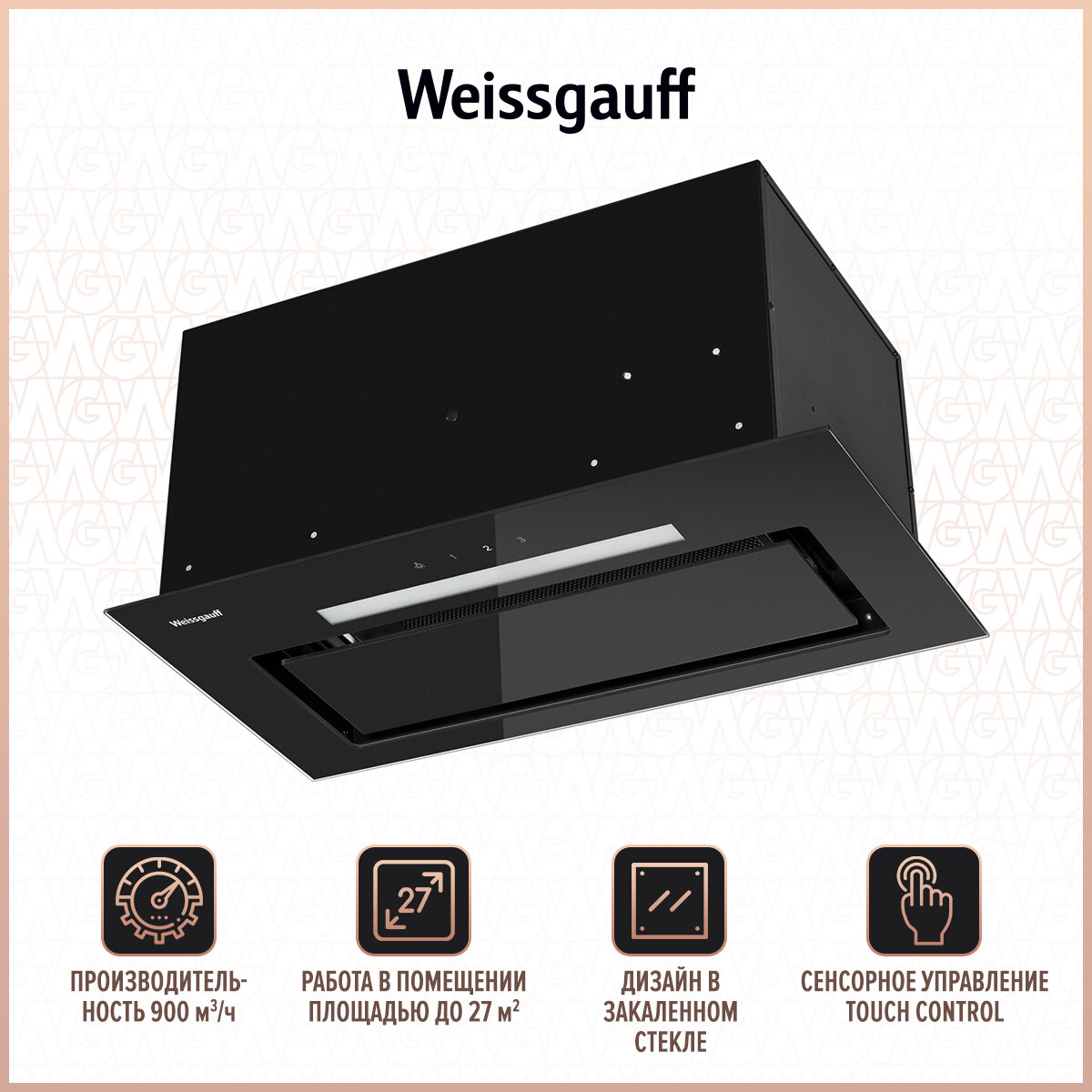 Кухонная встраиваемая вытяжка Weissgauff TEL 06 1M BE, производительность 600 м3/ч