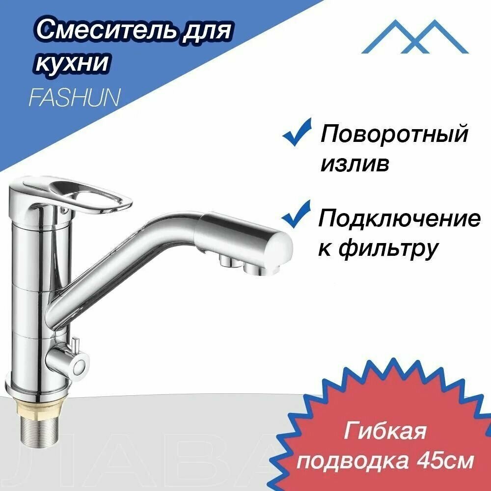 10 цен на Смеситель для кухни однорычажный на мойку под фильтр с краном для питьевой воды Fashun, хром
