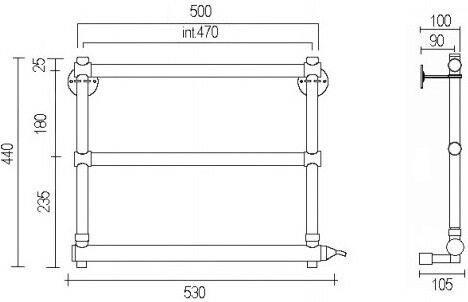 TERMINUS Полотенцесушитель электрический Terminus Хендрикс П6 500x596, ТЭН HT-1 300W, левый/правый