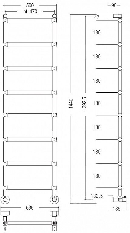 TERMINUS Полотенцесушитель электрический Terminus Хендрикс П6 500x596, ТЭН HT-1 300W, левый/правый