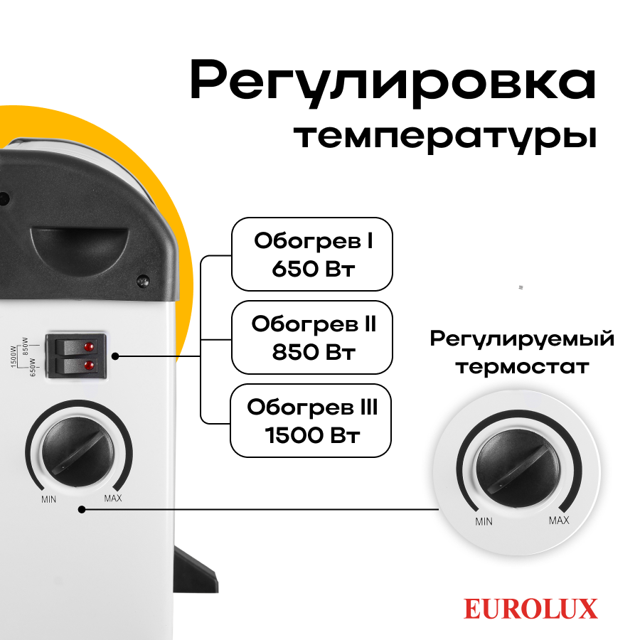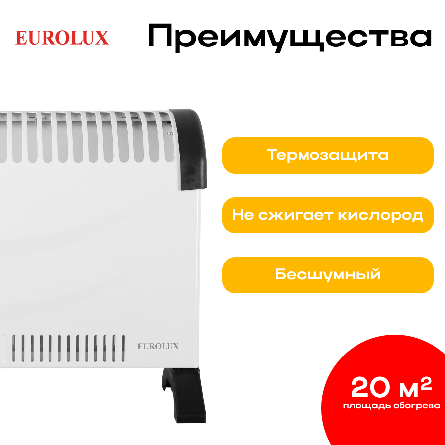 Отзывы на Eurolux Обогреватель Eurolux ОК-EU-1500C, конвекторный, 1500 Вт, механ. регулировка, стич, белый