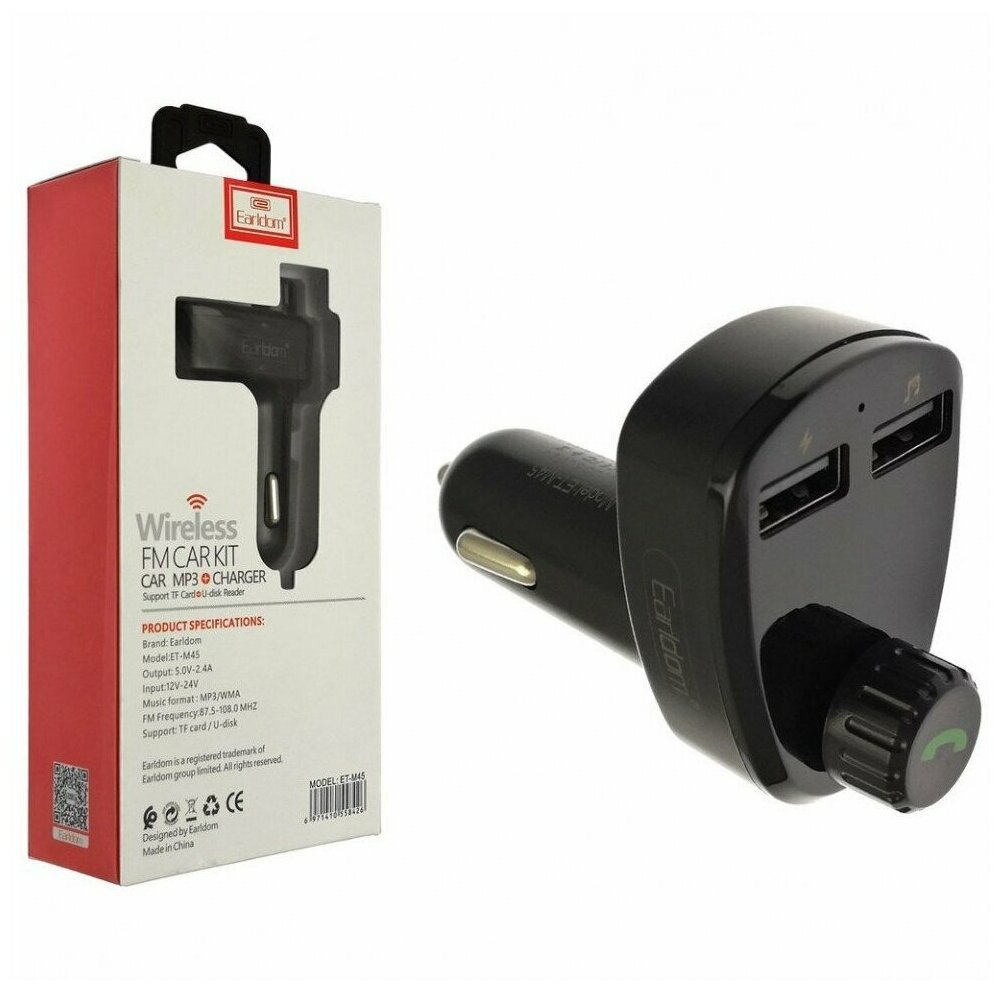 FM-трансмиттер (модулятор) Earldom ET-M45 с Bluetooth, 2xUSB, microSD - черный информация: