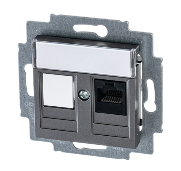 ABB EPJ Levit cталь / дымчатый чёрный Розетка компьютерная RJ45 кат,5e+заглуш,, , сталь