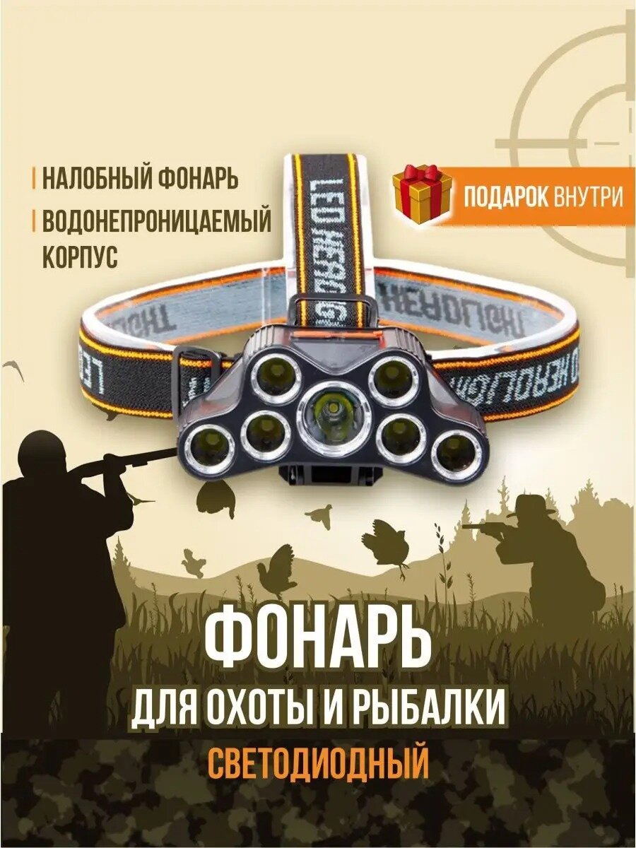Налобный фонарь аккумуляторный, мощный светодиодный 18650