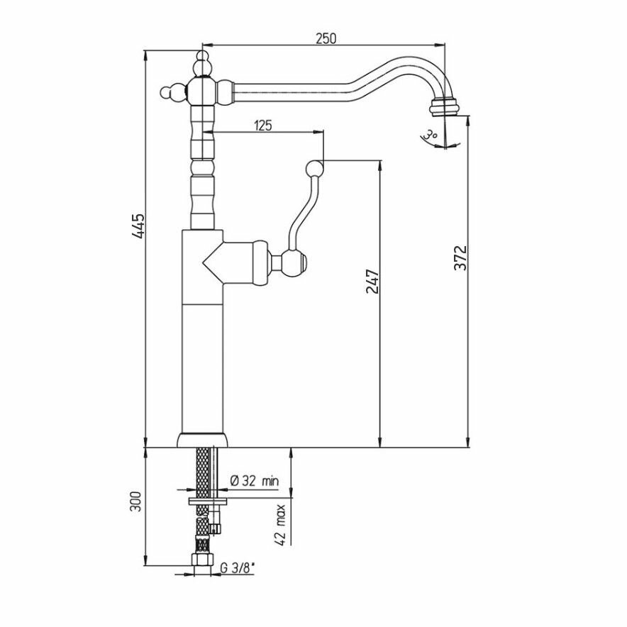 | Длина излива | 250 мм |