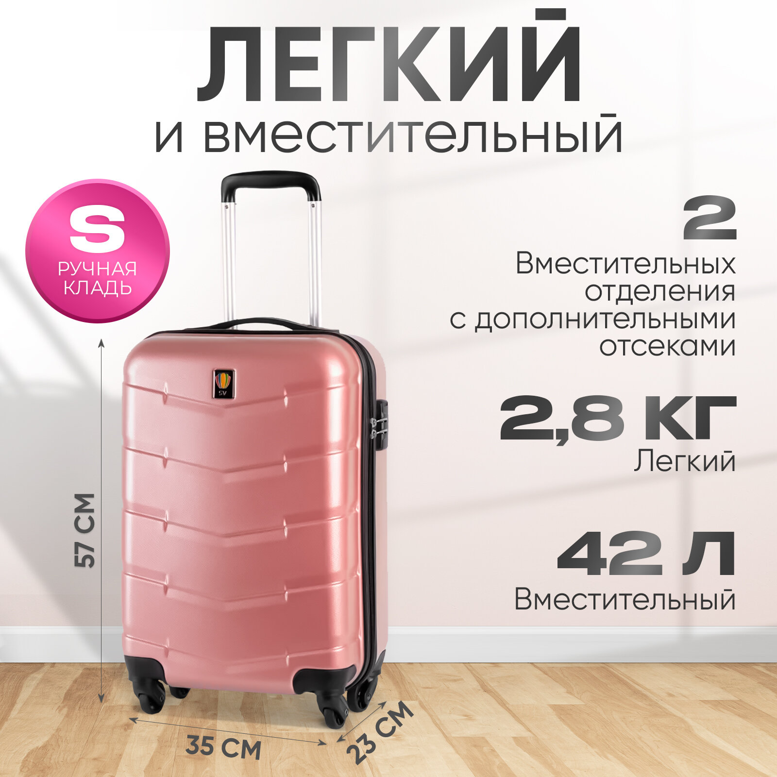 Чемодан Sun Voyage на колесах, ручная кладь S, розовый 6 032 ₽