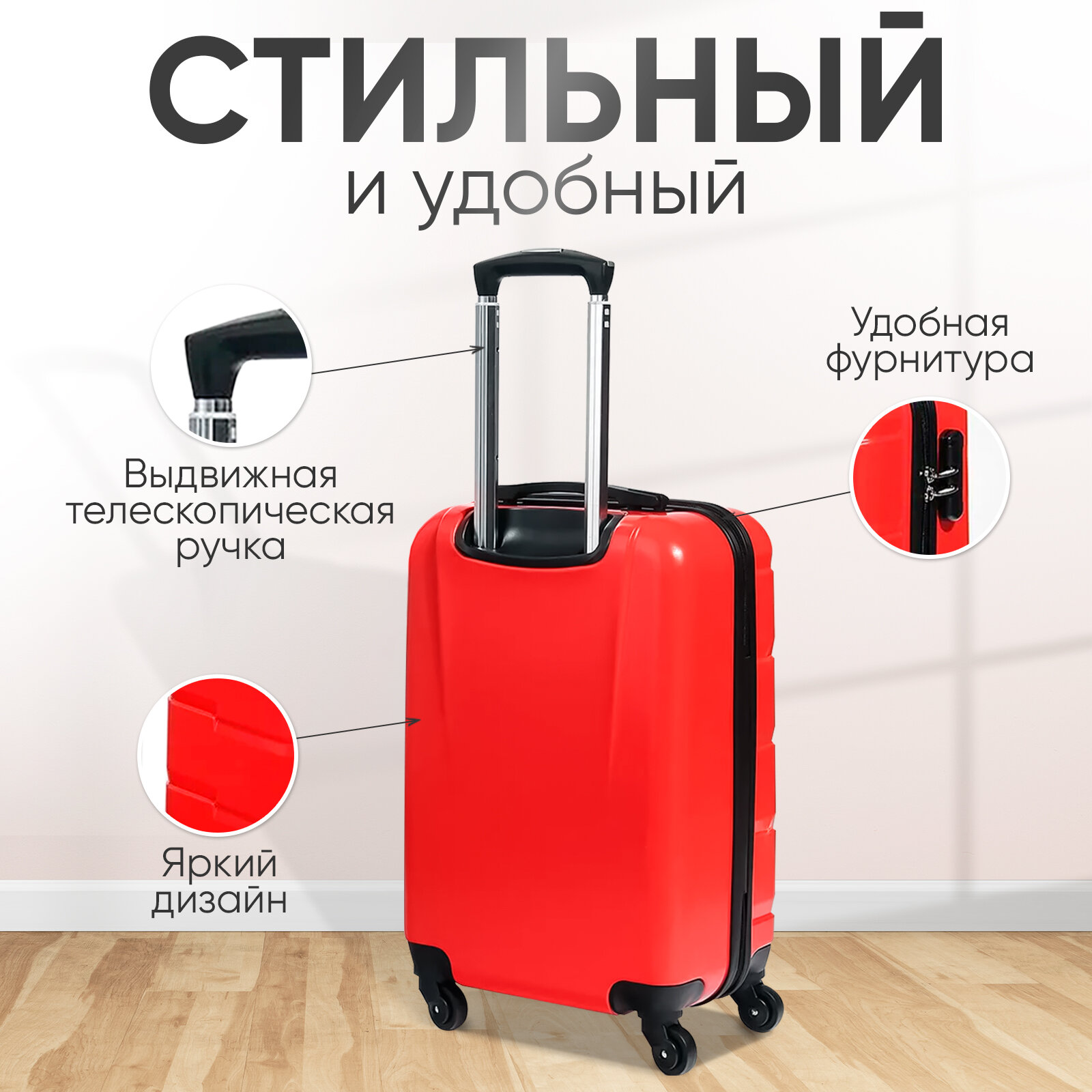 Чемодан Sun Voyage на колесах, ручная кладь S, красный информация:
