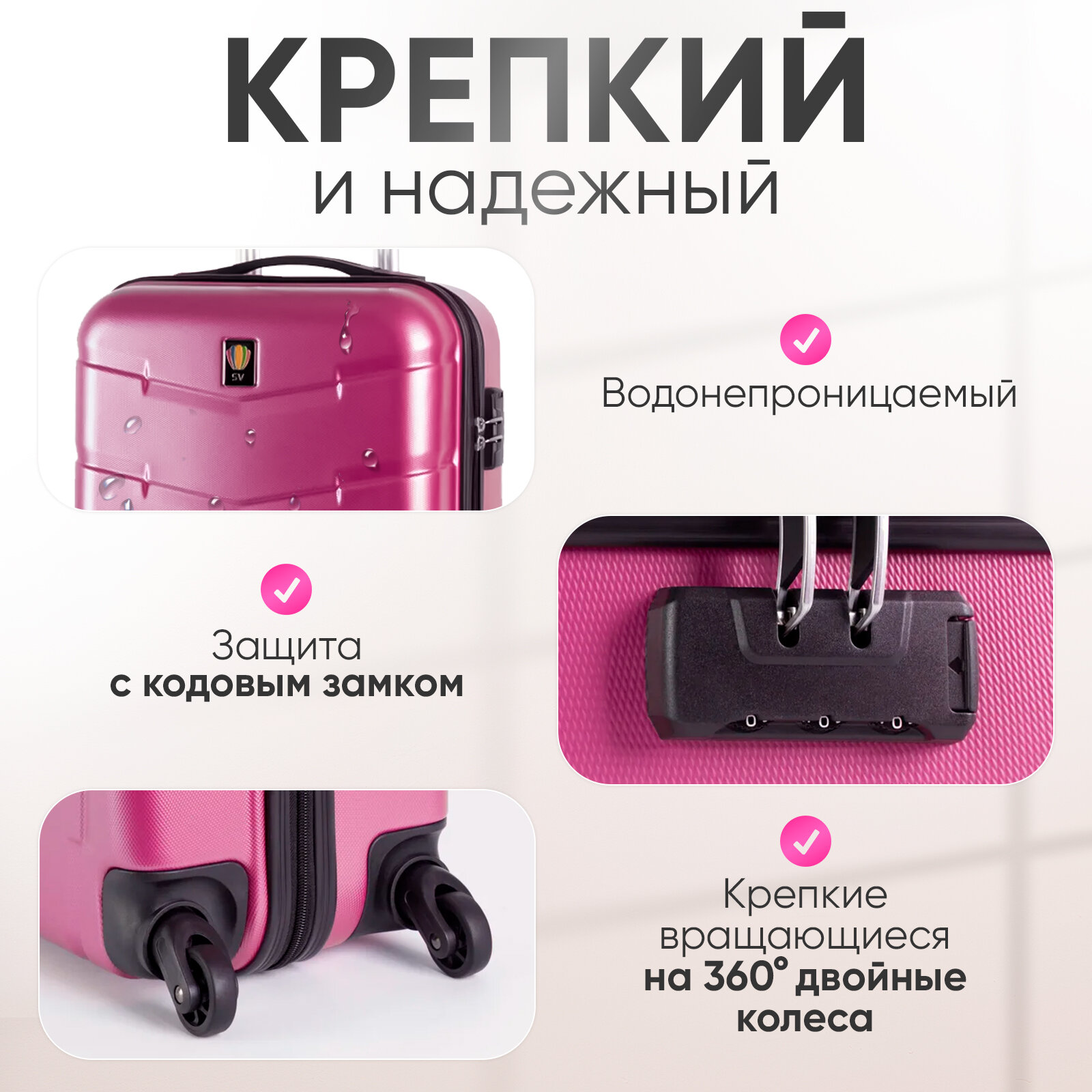 Чемодан Sun Voyage на колесах, ручная кладь S, розовый 6 032 ₽
