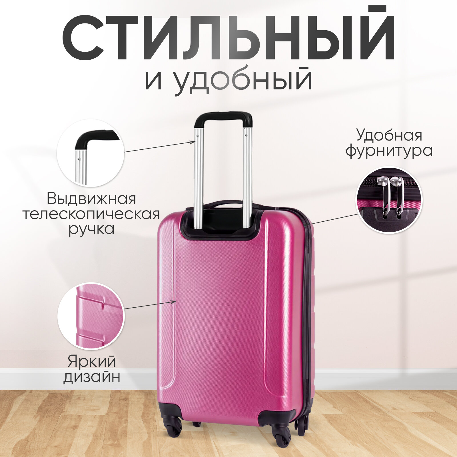 Чемодан Sun Voyage на колесах, средний M, фуксия