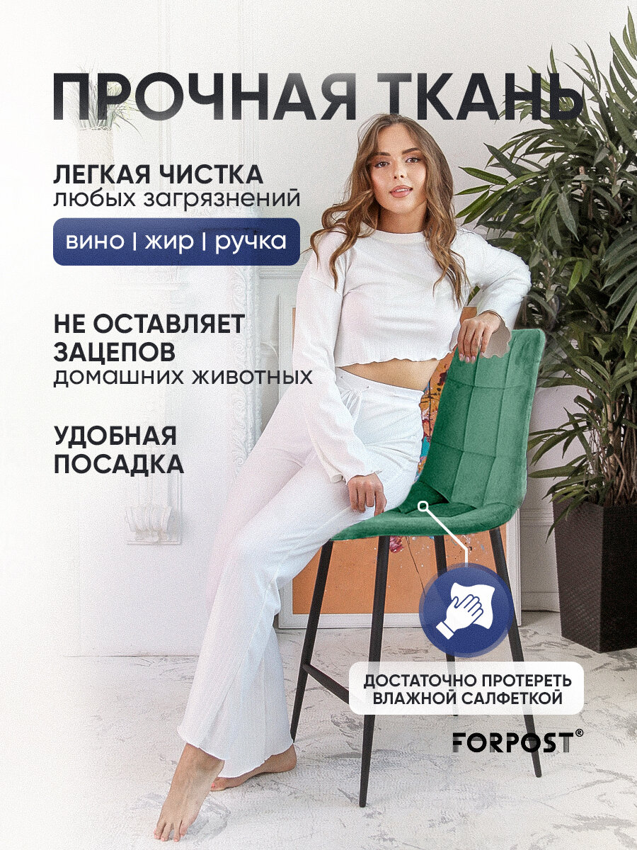 Барный стул со спинкой для кухни Тиффани изумруд 7 631 ₽