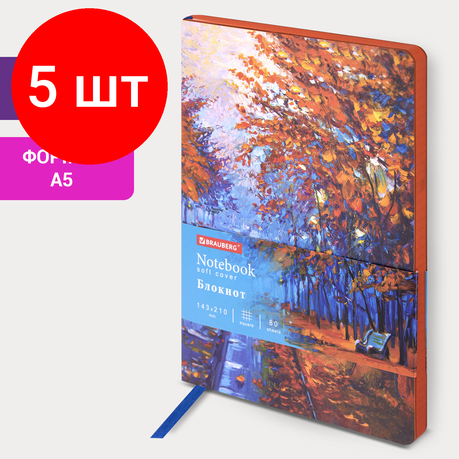 10 цен на Комплект 5 шт, Блокнот А5 (143x210 мм), BRAUBERG VISTA "Aqua Autumn", под кожу, гибкий, 80 л., 112072
