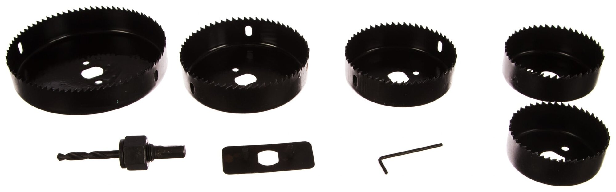 | Дополнительная информация | в комплекте: 5 коронок (68мм, 76мм, 89м, 102мм, 127мм), ключ шестигранный, державка с центрирующим сверлом для коронок 68-127мм |