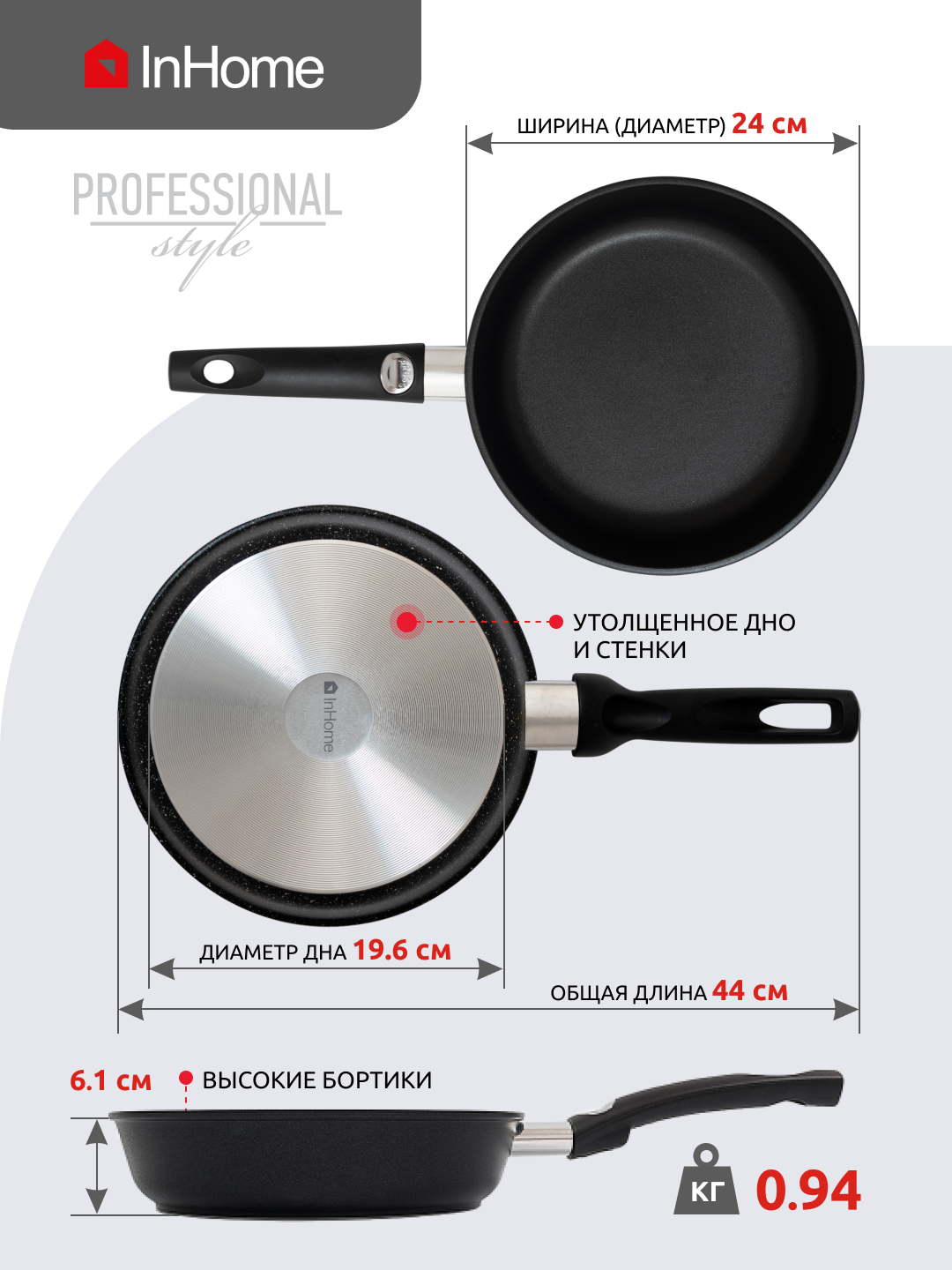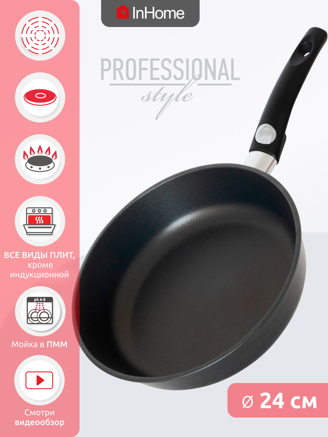 Сковорода InHome IVFP 24 см + съемная ручка, серия "Professional Style" черный