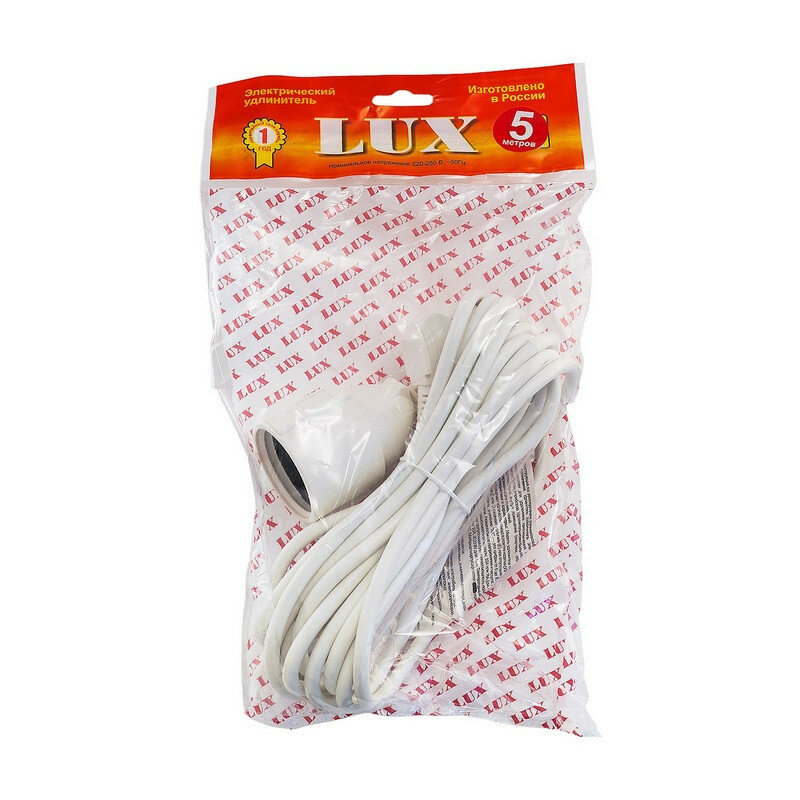 10 цен на Удлинитель LUX У-161-05 16А 5м 1 розетка c заземл. белый