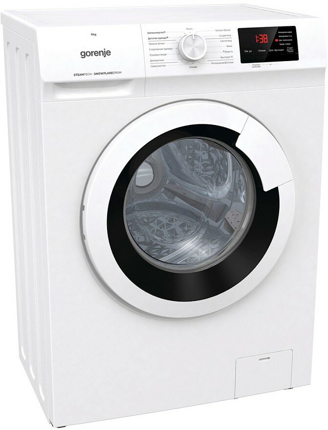 Стиральная машина Gorenje WHE60SFS, класс энергопотребления А, 6 кг, 15 программ, 1000 об/мин, обработка паром SteamTech, самоочистка SterilTub, автовзвешивание TotalWeight, блокировка управления, белый
