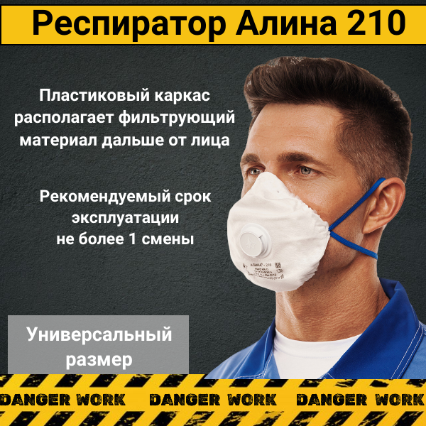 Респиратор - Маска Алина 210 с клапаном выдоха FFP2 NR D, 1 шт 46 ₽