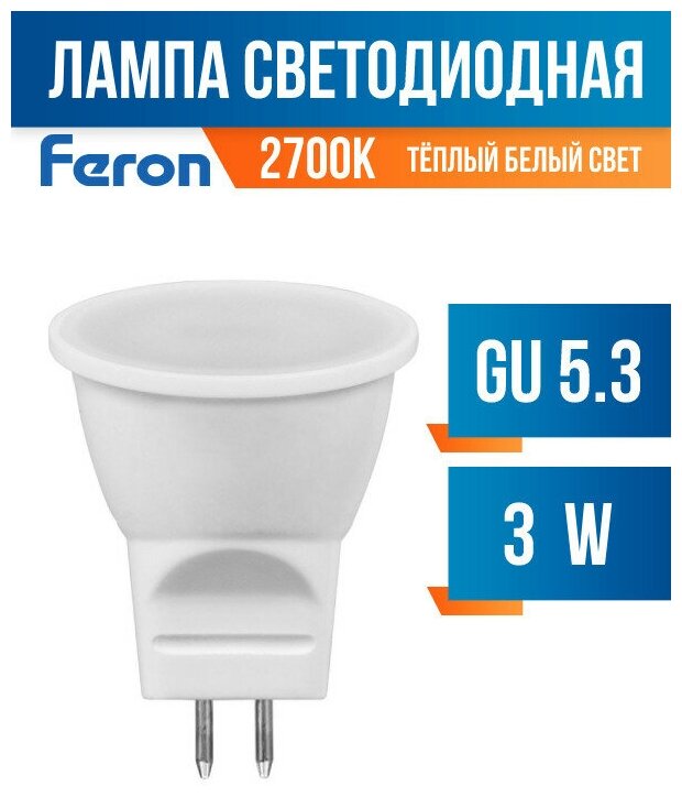 Лампа светодиодная LED 3вт 230в G5.3 MR11 теплый 25551 FERON информация: