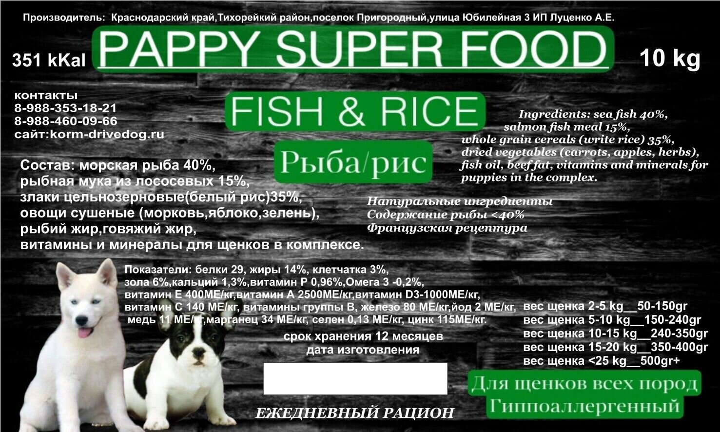 PAPPY SUPER FOOD гипоаллергенный корм дл щенков средних и крупных пород рыба/рис 5 кг информация: