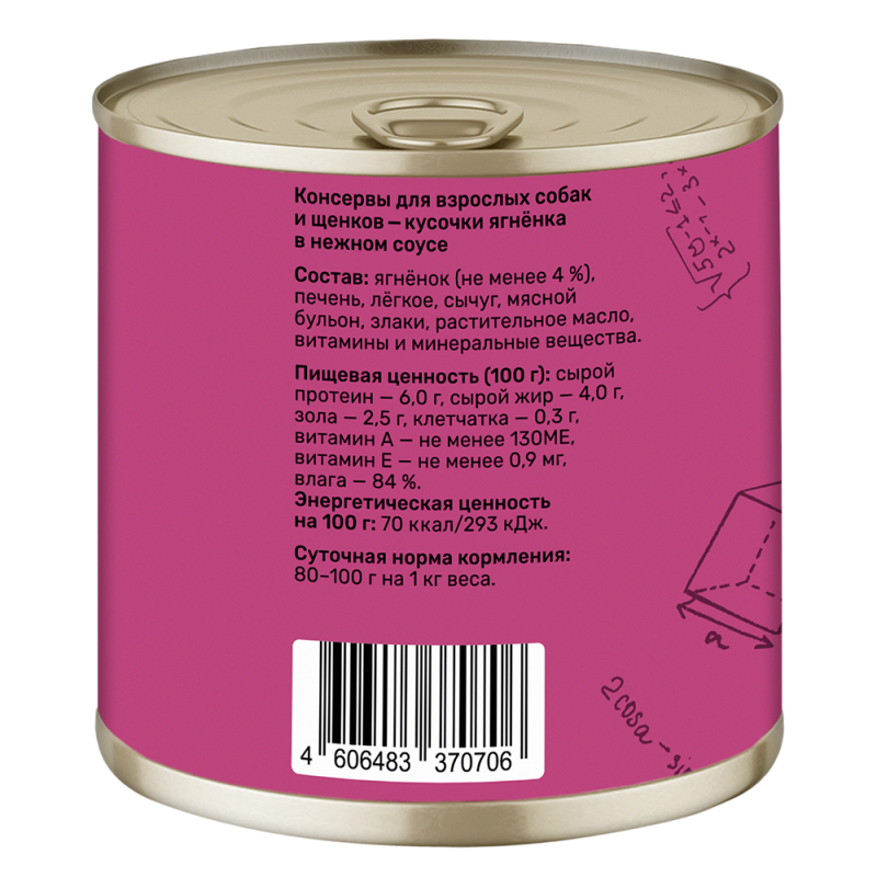 Консервы для взрослых собак и щенков кусочки ягненка в нежном соусе 22ел16 43736 информация: