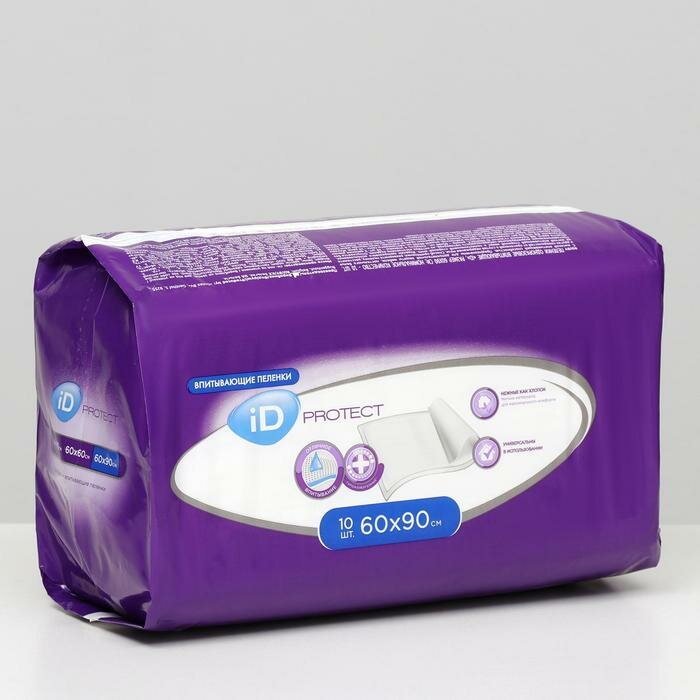 Пелёнки одноразовые впитывающие iD Protect, размер 60x90, 10 шт. информация: