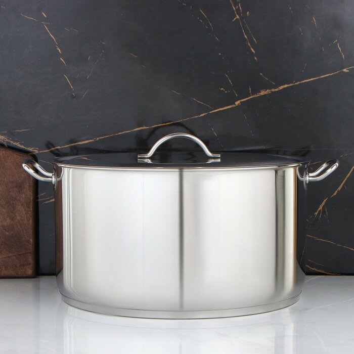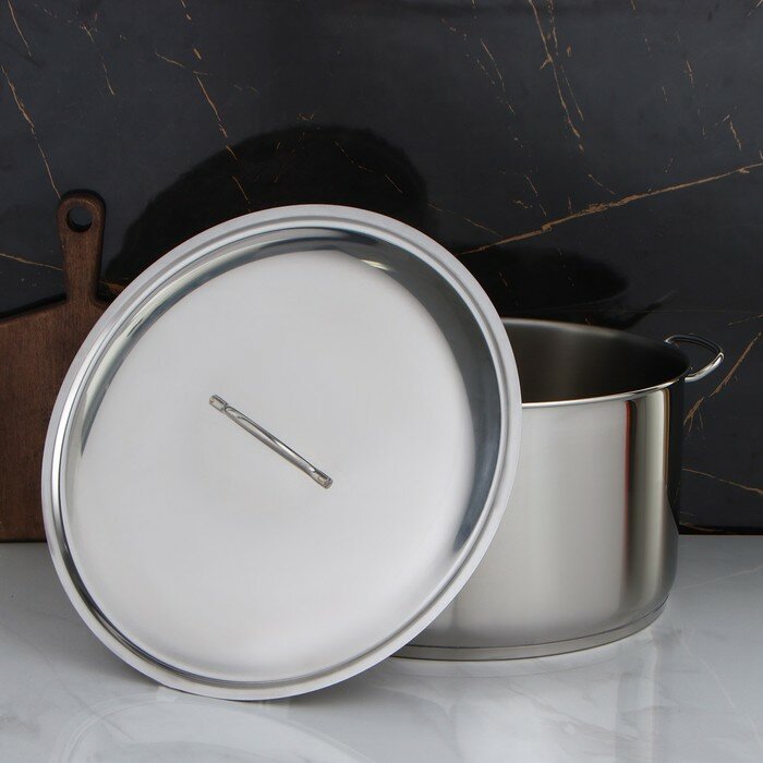 Кастрюля цельнотянутая, 25 л, d=39.6 см, с теплораспределительным слоем, с металлической крышкой