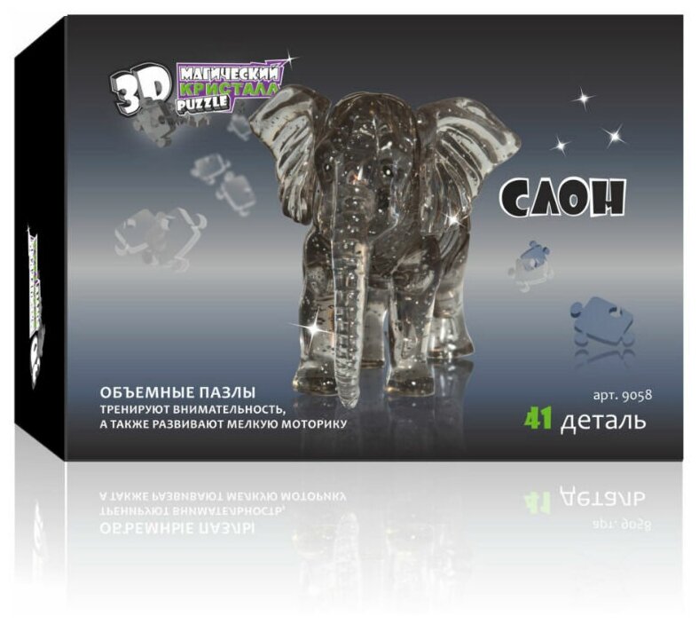 --- Пазл 3D кристаллический "Слон", 41 деталь, микс