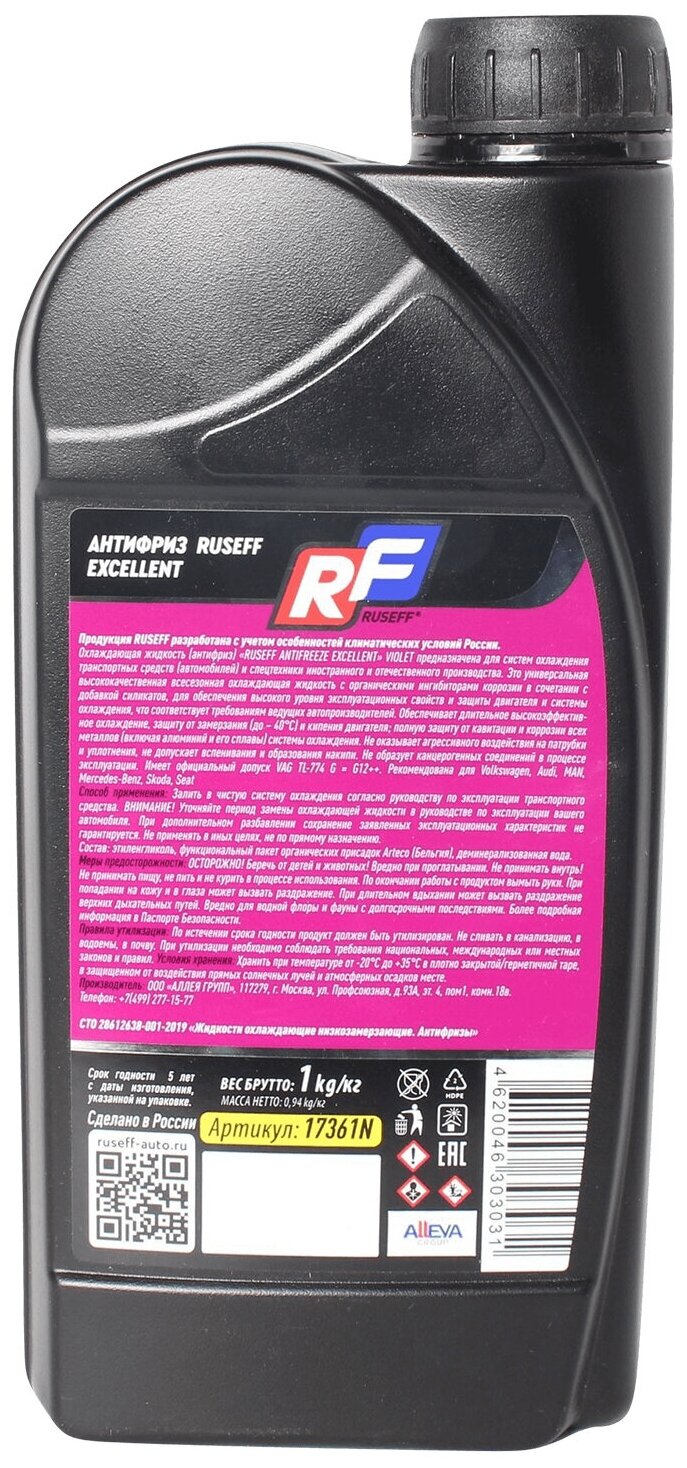 Ruseff Antifreeze Excellent Антифриз Фиолетовый G12++ (1Kg) RUSEFF арт. 17361N информация: