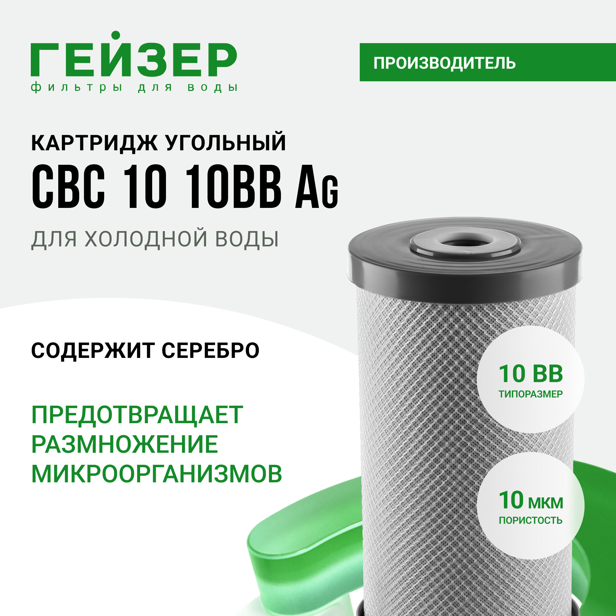 Картридж угольный с серебром Гейзер CBC Ag 10 - 10BB (Таиланд), очистка от хлора и других примесей, 27095 3 525 ₽
