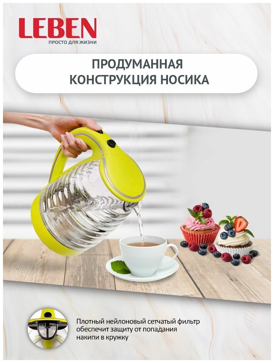 Чайник электрический стеклянный LEX LXK 30010-1, объем 1,2 л, подсветка.