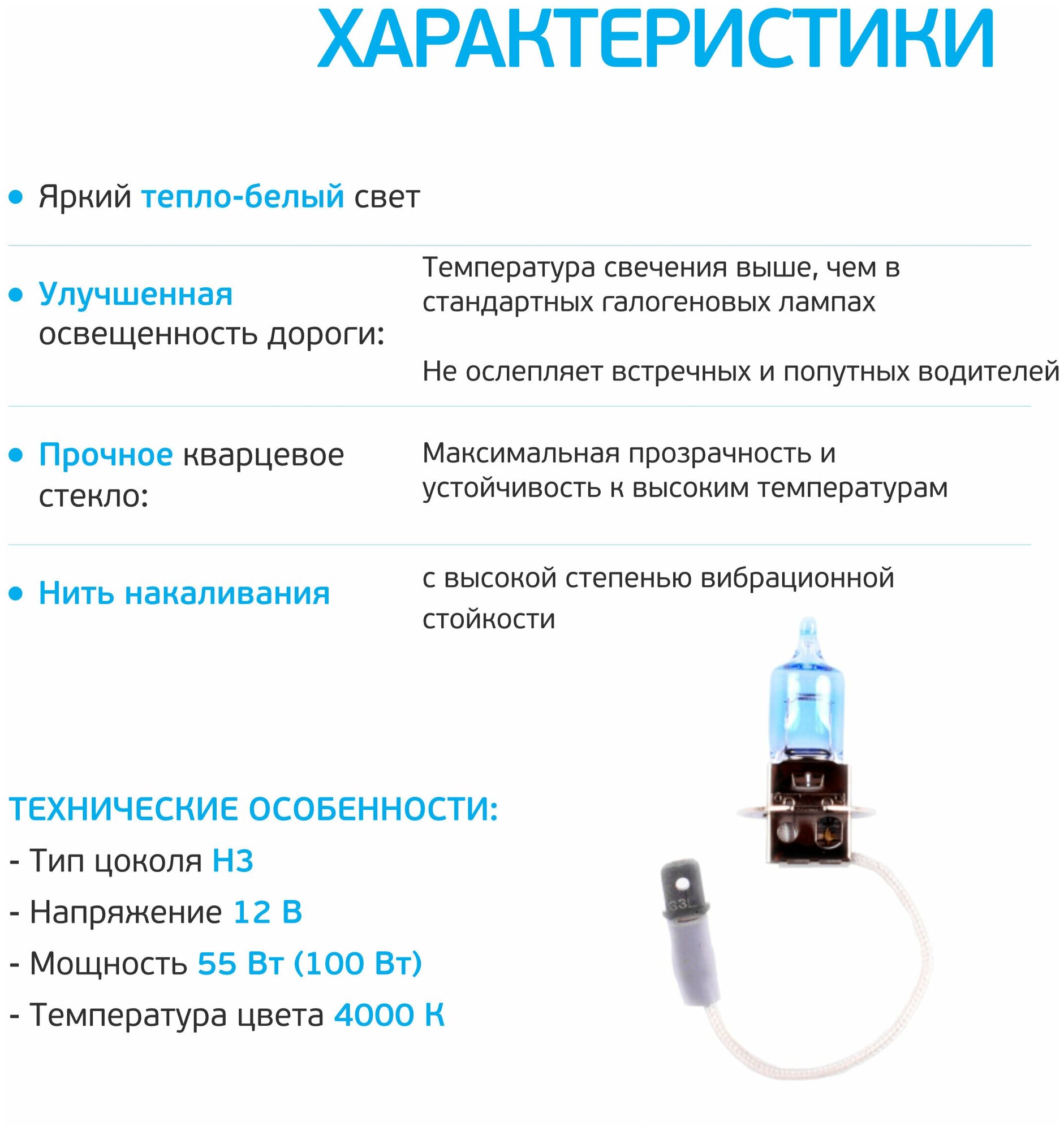 Koito P0752W Лампа галогенная H3 12V 55W "KOITO" (WHITEBEAM III) (2 шт.) информация: