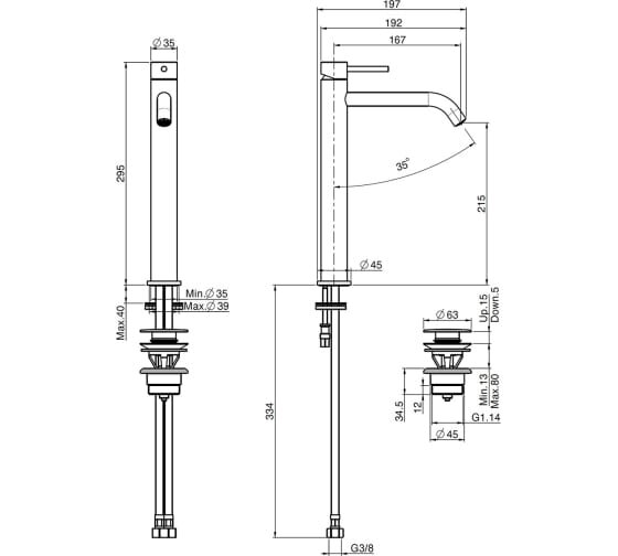 | Длина излива | 167 мм |