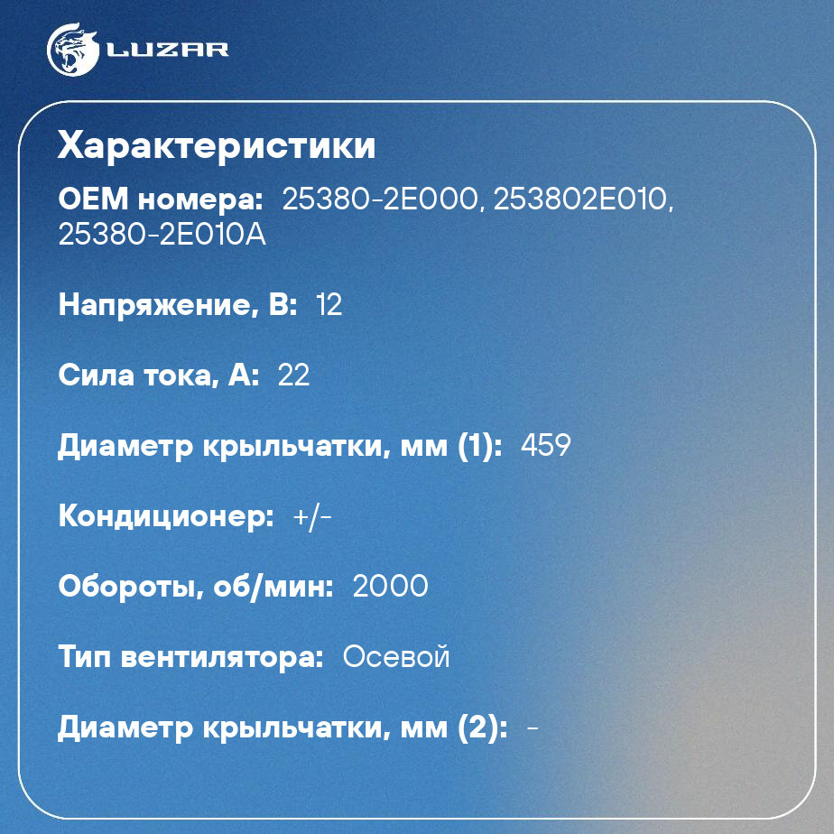 Lfk 0885_Вентилятор Охлаждения! Hyundai Tucson 04> LUZAR арт. LFK 0885 9 689 ₽