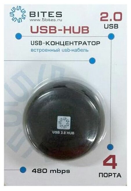 Разветвитель USB 5Bites HB24-200BK хаб - концентратор 4 порта USB2.0 полусфера - чёрный 316 ₽