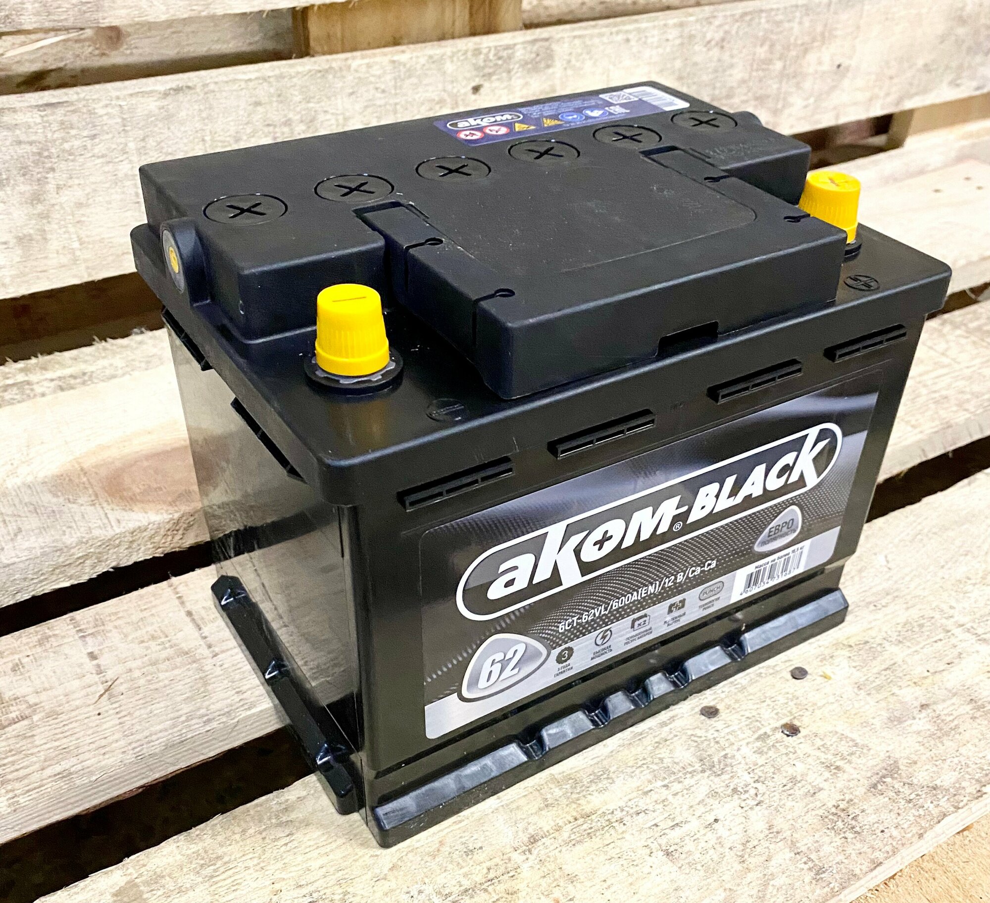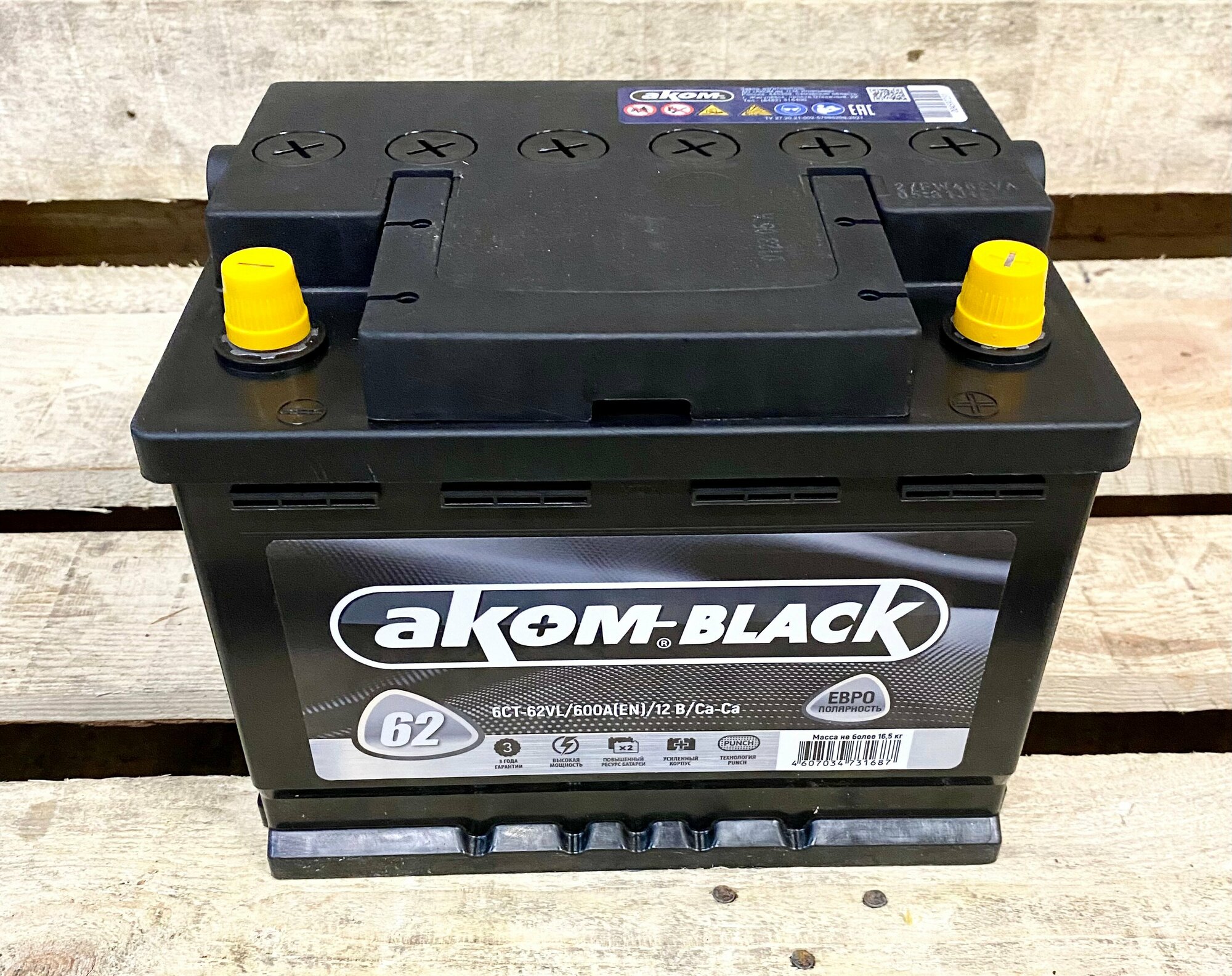 10 цен на AKOM 4607034731687 Аккумулятор 6СТ- 62 AKOM BLACK о.п. (пусковой ток 600А) L2 (AKOM)