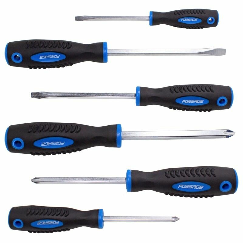FORSAGE FORSAGE Набор отверток магнитных Profi 6пр.(SL:5.5х100,6.5х125,8.0х150мм, PH:1х75,2х100,3х125мм)в блистере FORSAGE F7006A
