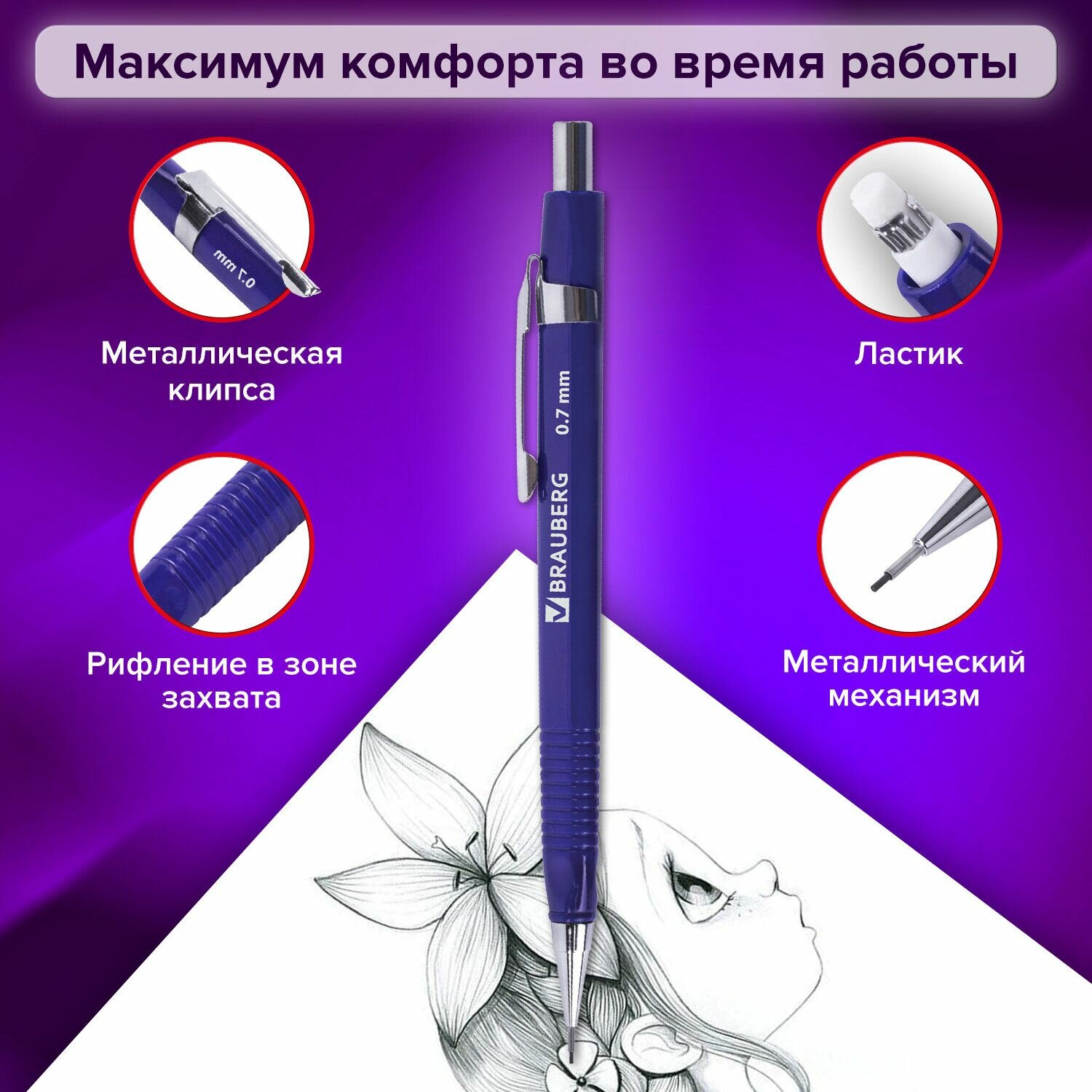 Набор Brauberg механический карандаш, трёхгранный синий корпус + грифели HB 0,7 мм 12 шт (180494) информация:
