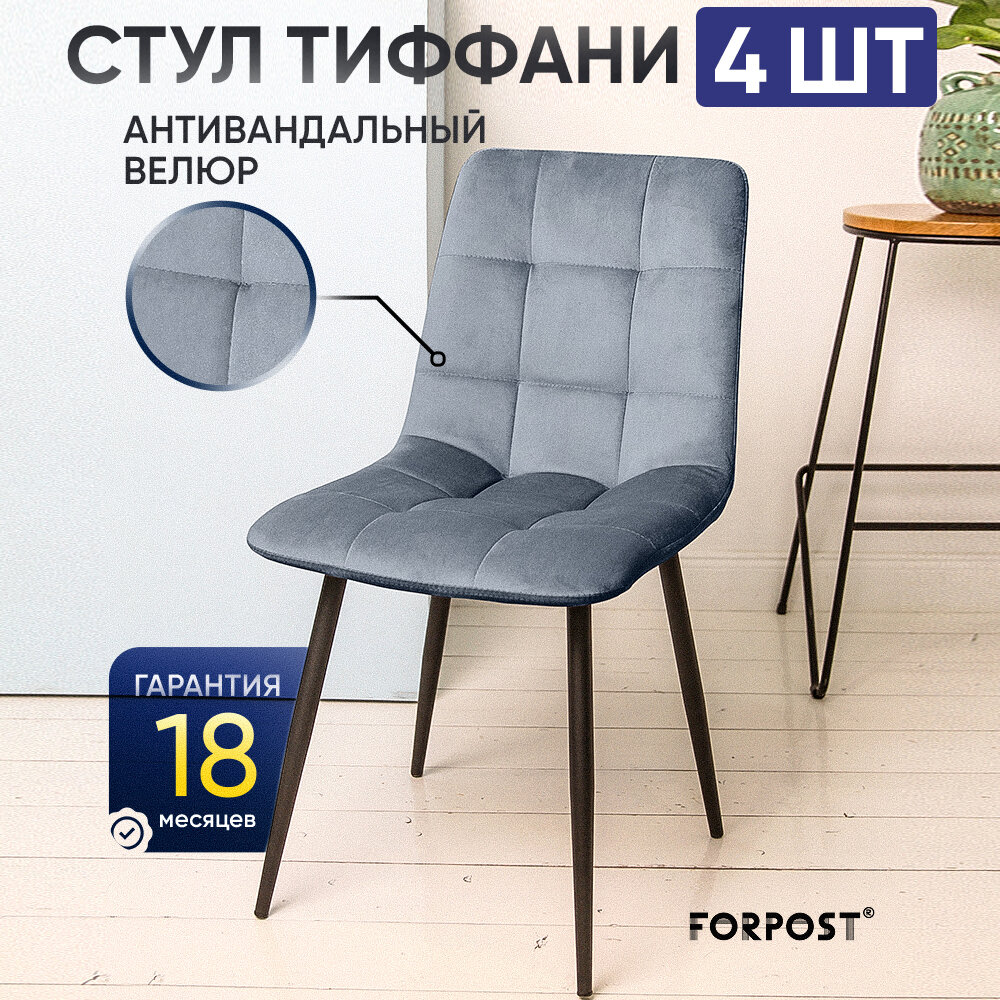 10 цен на Стул для кухни мягкий со спинкой Тиффани, 4 штуки серый