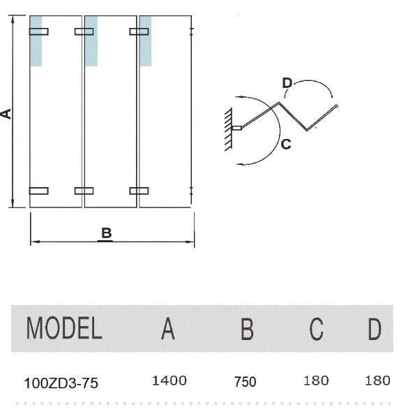 WW100 100ZD3-75 Ограждение на ванну. 750х1400 мм