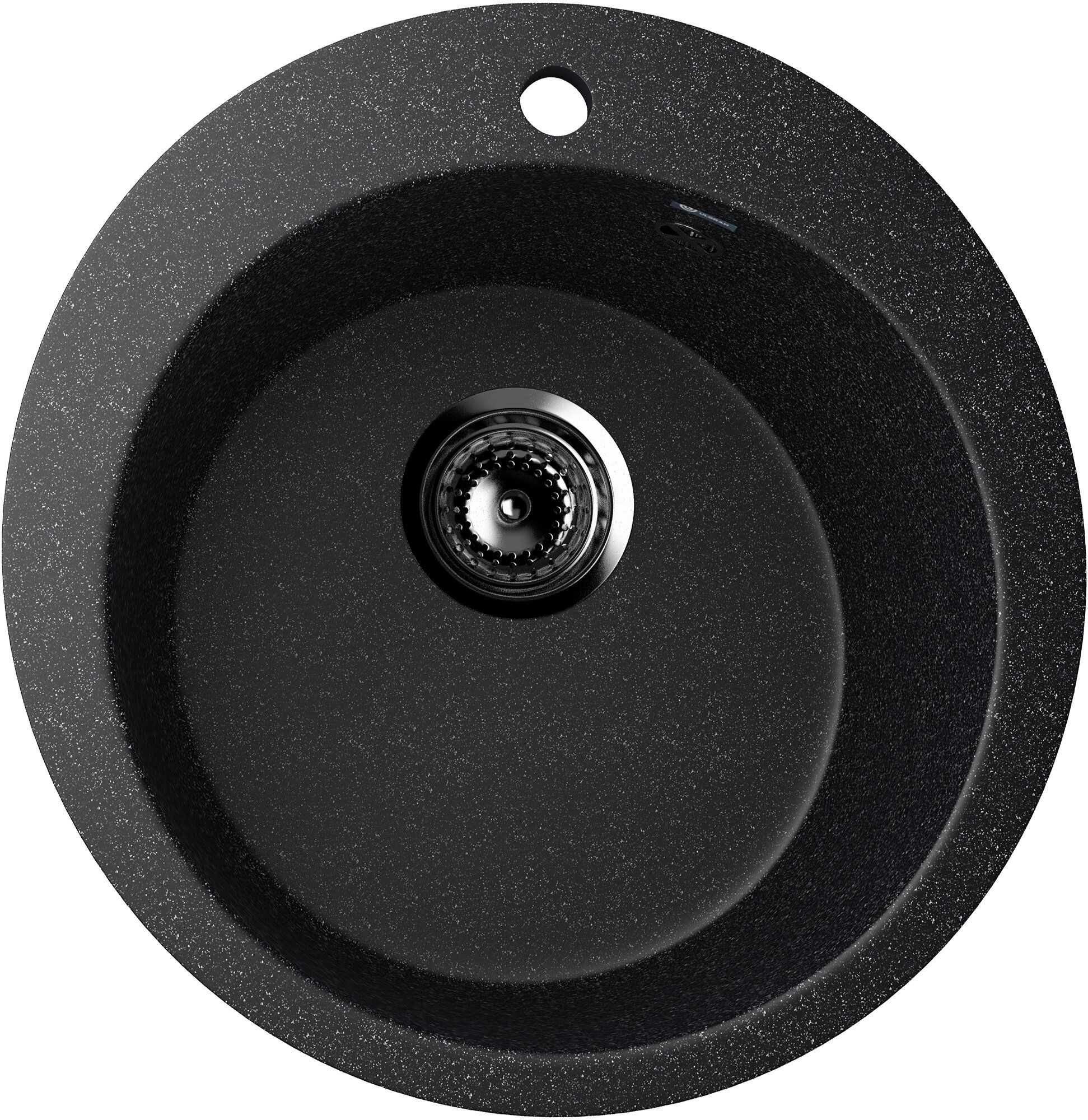 Мойка кухонная Ulgran из искусственного мрамора круглая U-405, цвет: ультра-черный, база: 47х47 см, арт. U-405-344 5 301 ₽
