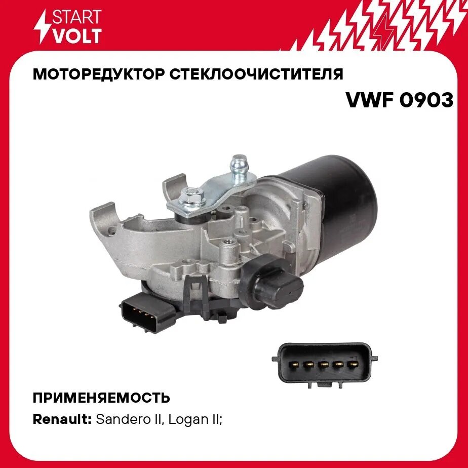 Моторедуктор стеклоочистителя для автомобилей Renault Logan II (12-)/Sandero II (12-)/Duster (21-) (передний) VWF 0903 StartVolt 7 818 ₽