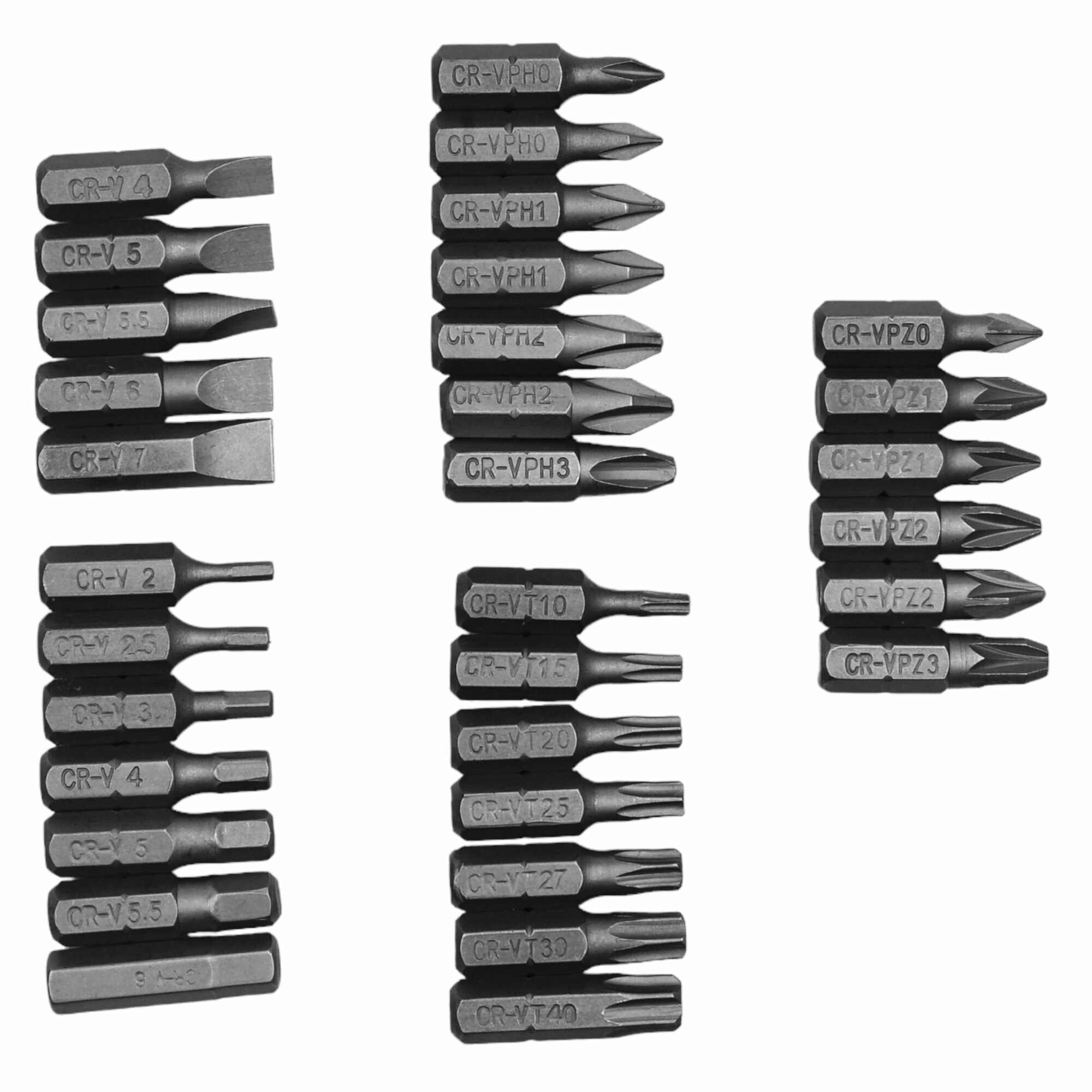 | Биты подробно | SL: 3, 4, 5, 5,5, 6, 7 мм PH: #0, #1, #1, #2, #2, #3 6 PZ: #0, #1, #1, #2, #2, #3 TORX: T10, T15, T20, T25, T27, T30, T40 HEX: 2, 2.5, 3, 4, 5, 5.5, 6 мм |