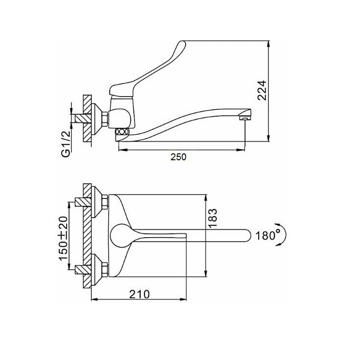 Смеситель для кухни настенный D-lin D141427 с изливом 250 мм, хром