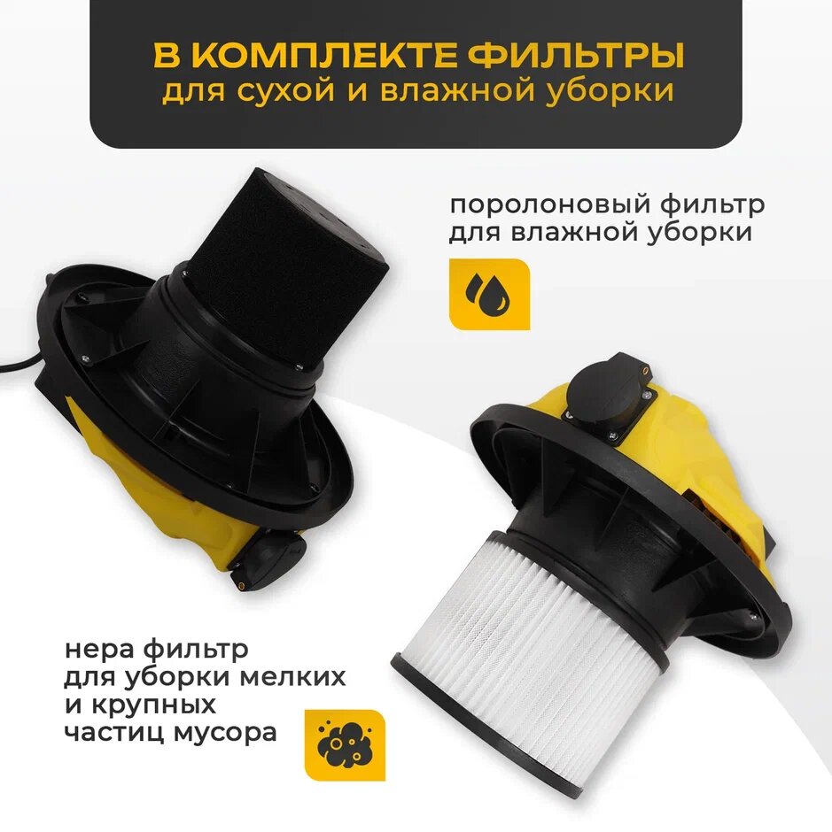 Пылесос строительный / промышленный ELECTROLITE ПС 20С ( 1500 Вт, 20 л, розетка для инструмента ) информация: