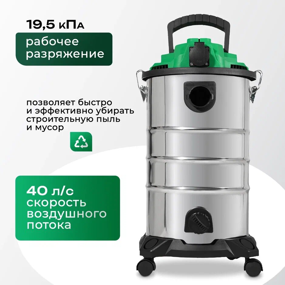 Пылесос строительный / промышленный ELECTROLITE ПС 30С ( 1500 Вт, 30 л, розетка для инструмента ) информация: