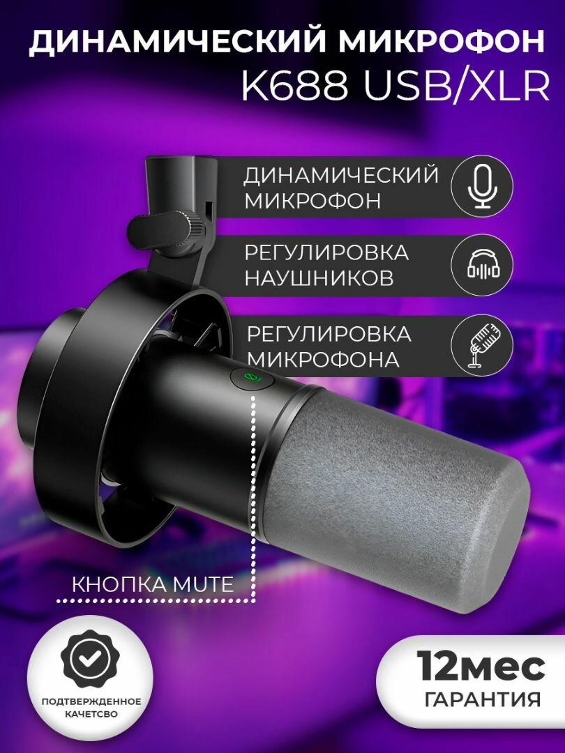 Микрофон динамический / гибридный Fifine K688 USB/XLR (Black) информация: