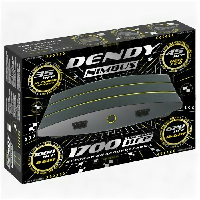 Игровая приставка Dendy Nimbus, 8-bit/16-bit, 1700 игр, 2 геймпада, черный