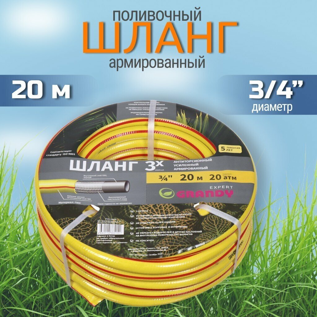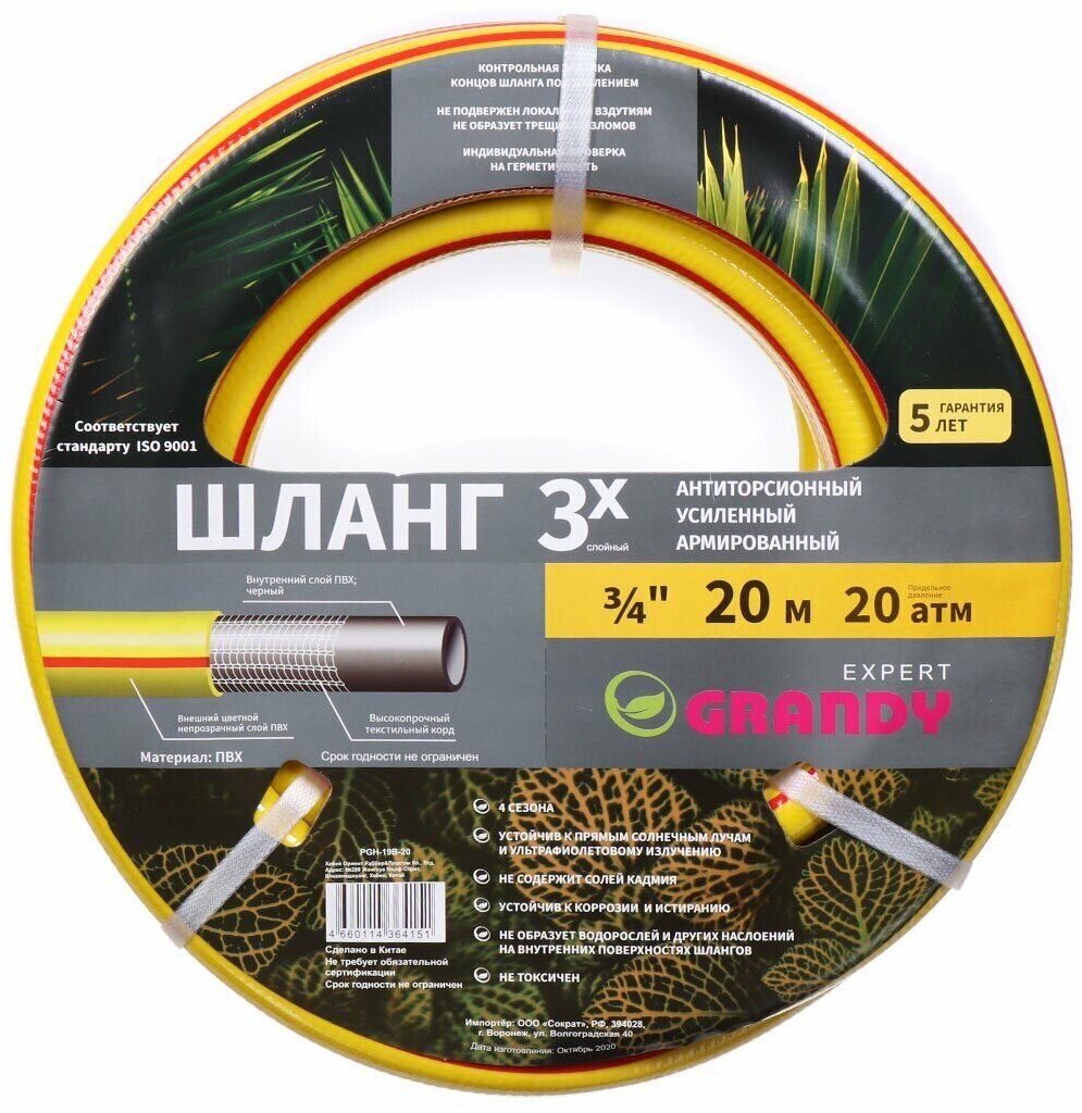 Шланг поливочный, 3/4 '', d20 мм, 20 атм, армир, 20 м, 3 сл, Grandy, Expert, ПВХ, антиторс, PGH-19B- информация: