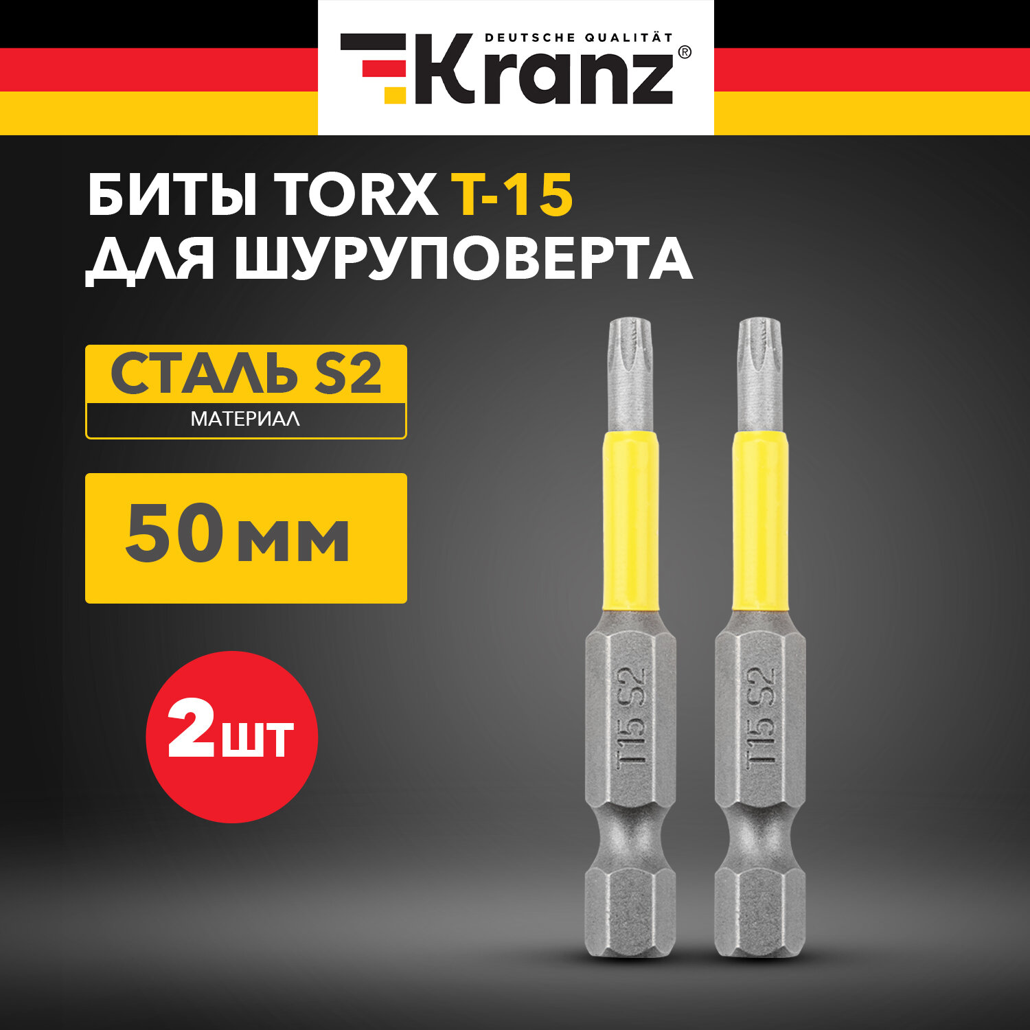 Бита Torx T15x50 мм сталь S2 для шуруповерта 2 шт KRANZ