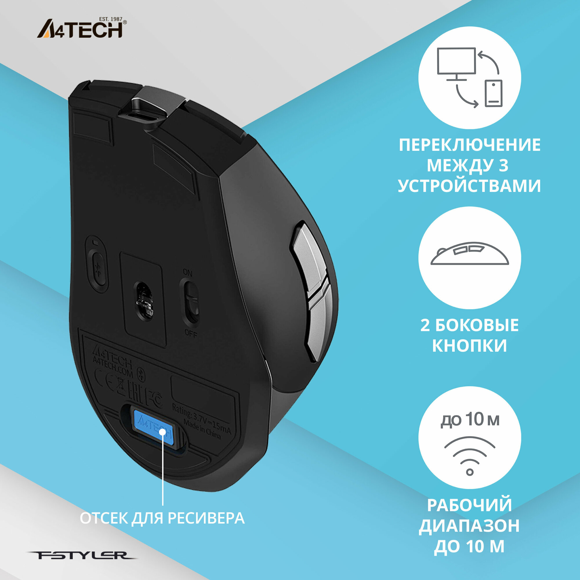 Мышь A4Tech Fstyler Fb35c серый/черный оптическая (2400dpi) беспроводная BT/Radio USB (6but) (158383 . информация: